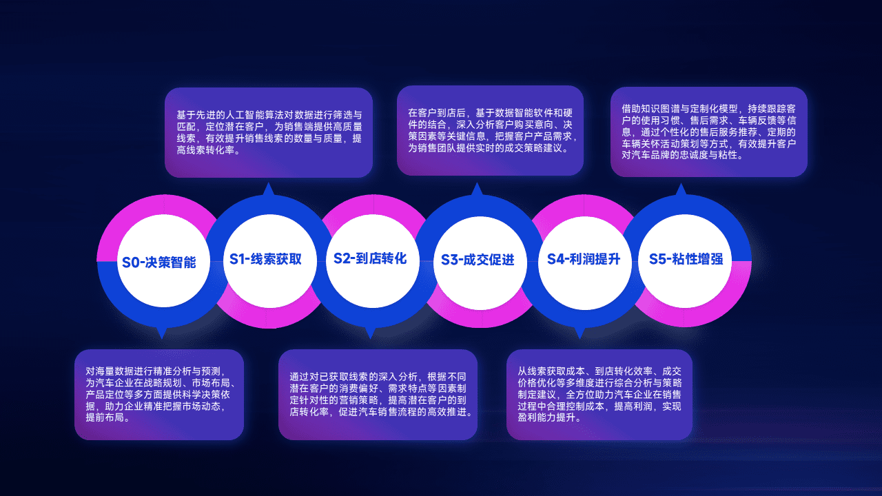 通过拓宽潜在客户来源、、、优化线索分配并提高到店转化率,,,,以增强销售效率。。同时,,,利用线索数据不断优化分析模型,,,,有效提升转化率,,,扩大营销影响力。。。